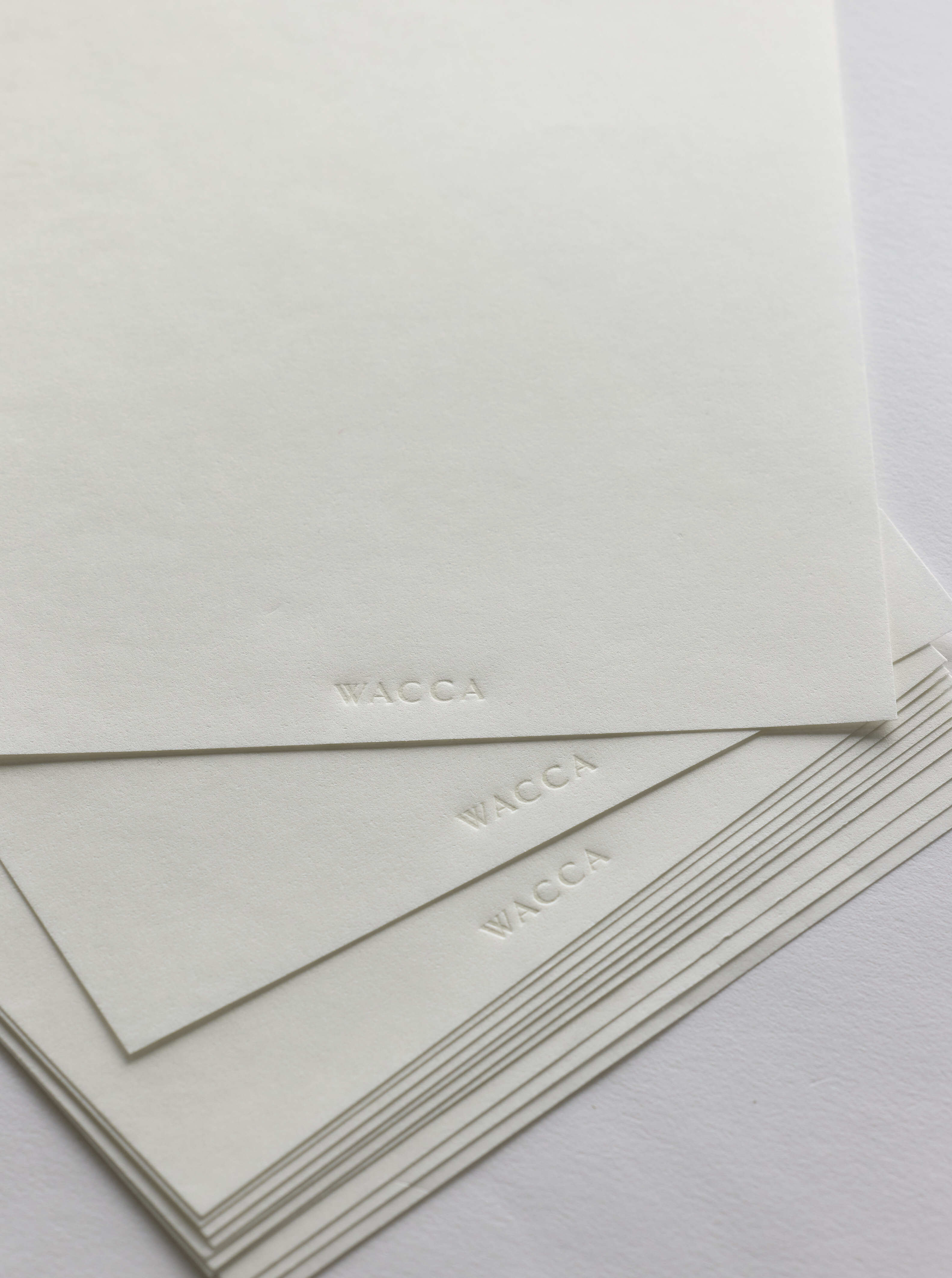 WACCAロゴ入りの便箋12枚と、柳絞り染め和紙5枚を組み合わせた便箋セットです。