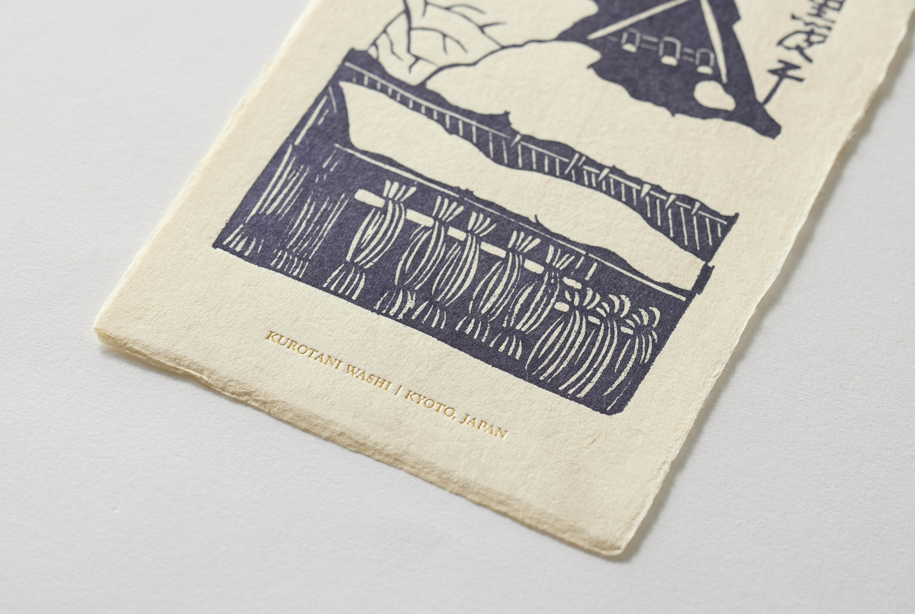 黒谷で手漉きされた楮の和紙に、活版印刷で図案を刷り込んだグリーティングカードです。
